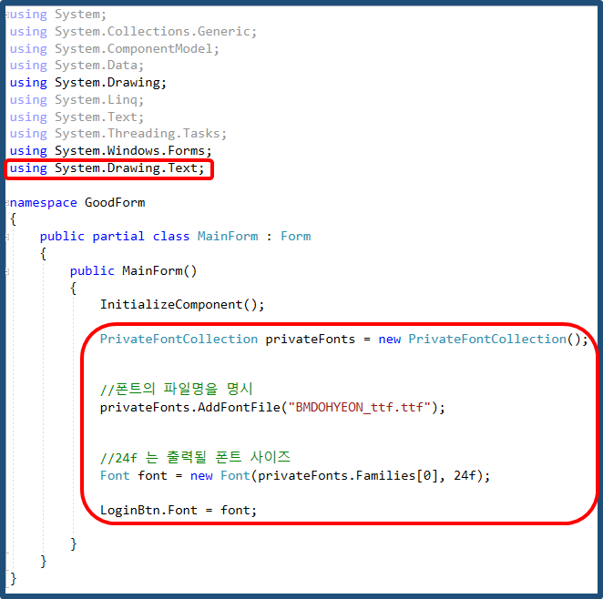 3. using System.Drawing.Text 상단에 명시